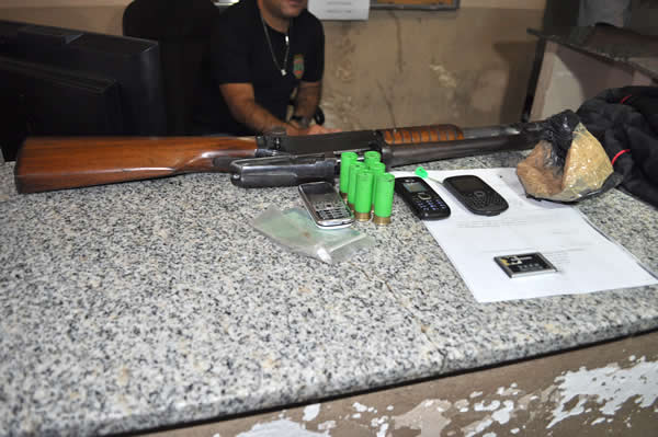 A polícia encontrou uma espingarda calibre 12 de repetição com Paizinho (Foto: Michel Dantas/Agência Miséria)