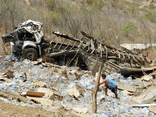 Mais um acidente de trânsito foi registrado na Rodovia Padre Cícero entre os municípios de Caririaçu e Lavras da Mangabeira. Por volta das 11h30min desta quinta-feira um caminhão Volkswagen de cor branca desgovernado tombou e desceu uma ribanceira com altura de 30 metros. O veículo seguia de Juazeiro do Norte com destino a Quixadá conduzindo uma carga de Água Mineral Castelo.