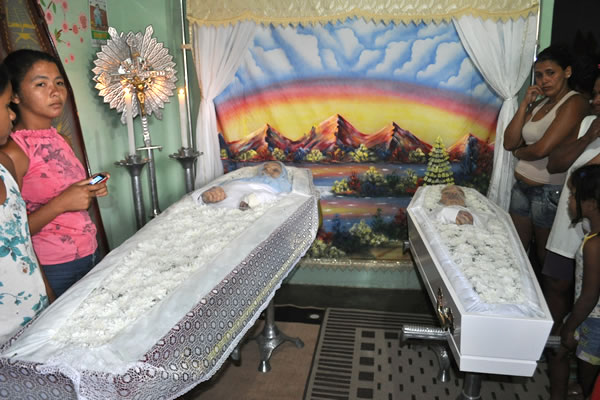 Os corpos foram velados por toda a noite na residência da avó e mãe na Rua Teodomiro Rocha nas Timbaúbas. (Foto: Michel Dantas/Agência Miséria)