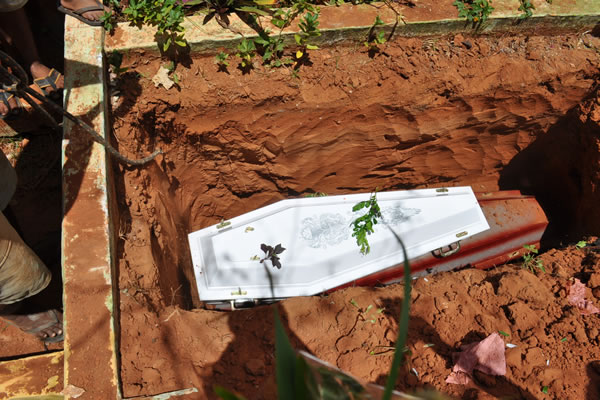 Daniela Bezerra de Araújo, 34 anos e seu filho Guilherme Bezerra de Araújo, 5 anos, foram sepultados na manhã deste domingo (08). (Foto: Michel Dantas/Agência Miséria)
