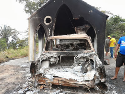 A Polícia Militar (PM) encontrou, na noite da última segunda-feira (30), o corpo de um homem dentro de um carro que estava pegando fogo às margens da estrada que liga Guaraciaba do Norte à Reriutaba, no interior do Estado. Segundo a PM, o carro - de propriedade do ex-prefeito de Guaraciaba do Norte, Egberto Martins - adentrou uma capela às margens da estrada após colidir com a porta frontal do pequeno prédio.